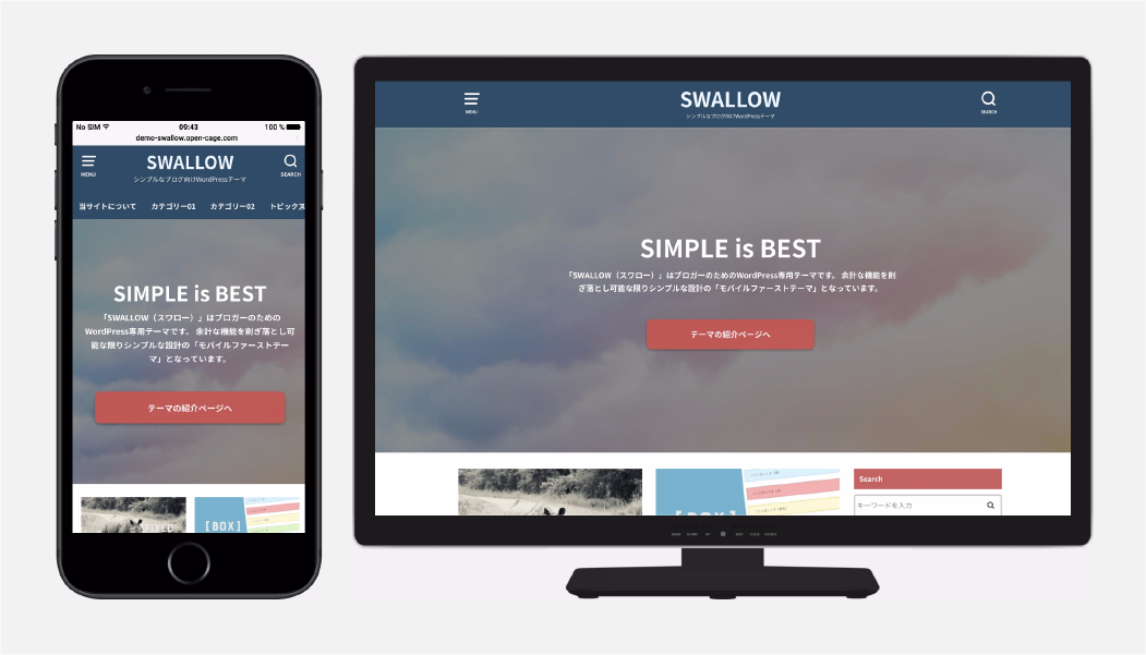 アニメーションつきのさりげなくインパクトのあるヘッダーイメージを設定可能です。(アニメーションはInternet Explorerや古いブラウザでは動作しない場合があります。)